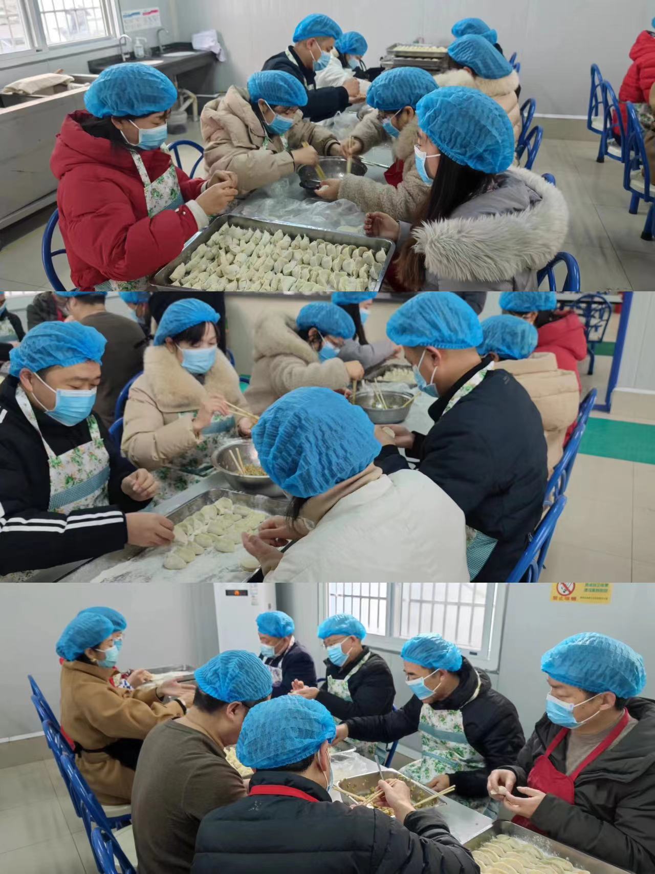 员工餐厅里,大家围坐桌前,分工协作,放馅、捏皮一气呵成,大家热情满满,相互之间传授着包饺子的技巧,一个个饺子,一个个和谐的场景,饱含了医院浓浓的情谊。