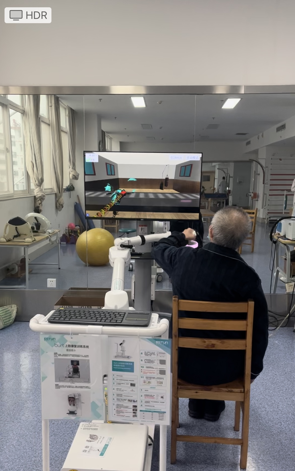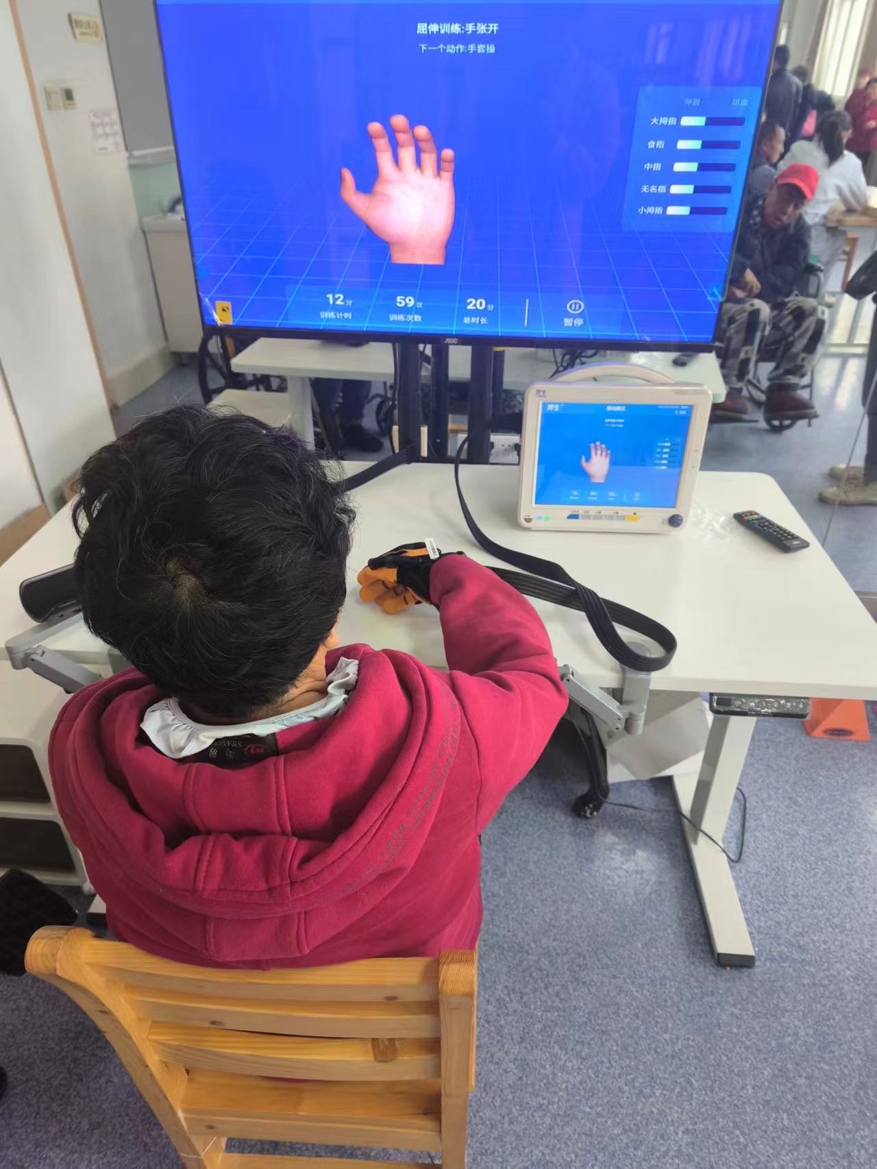 1.智能上肢机器人:采用计算机技术模拟人体上肢运动规律,增加智能反馈和三维运动空间,在一个虚拟的环境中进行游戏式的训练,提高了患者的兴趣,促进康复进程。本设备可使上肢在负重或者减重的状态下进行主动训练,从而恢复上肢的运动功能。适应症:脑卒中、脑外伤、神经系统疾病造成上肢功能障碍、术后恢复上肢功能的患者。