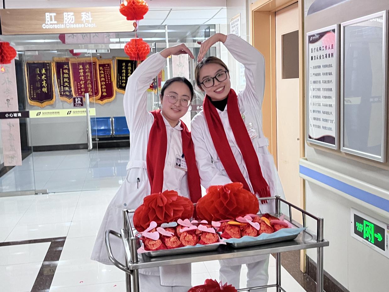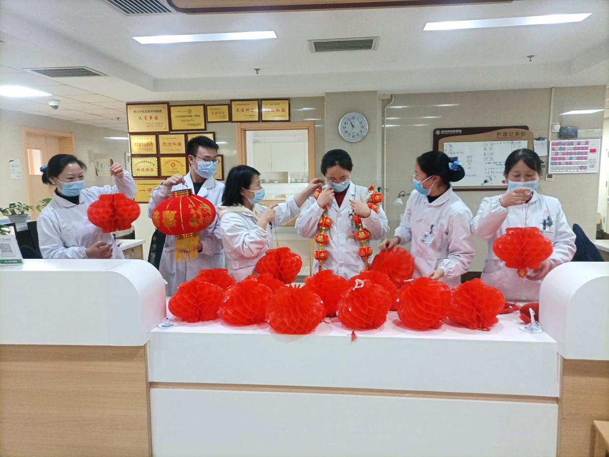 为了让在院患者及家属感受到新年的喜庆,体会"家"的感觉,增强战胜疾病的信心,我院肛肠科医护人员在百忙之中抽空对病区进行了精心布置,“贴春联、挂灯笼、贴福字、剪窗花......”病区里张灯结彩,处处洋溢着新年的气氛。