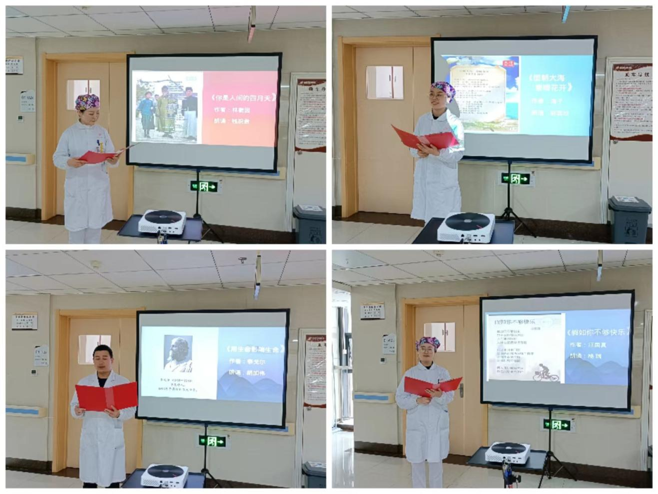 活动由护士长李夕主持,贾彤主任致词,他倡导大家多读书,读好书,畅游书海,与大师对话,为精神打底,为人生奠基;与经典为友,开拓视野,找到属于自己的“诗与远方”。