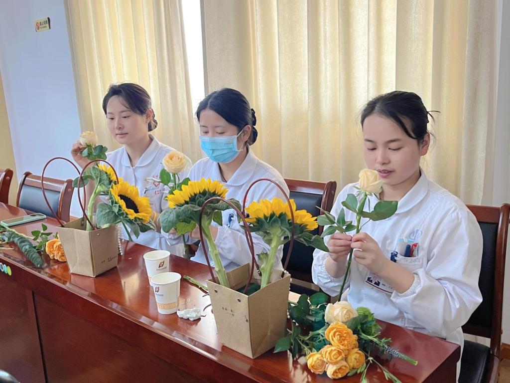 5月11日,护理部组织创意插花活动,活动特邀专业花艺师现场讲解与示范插画技巧。护士姐妹们巧手翻飞,一朵朵鲜花错落有致地摆放在花篮中,赋予了美不同的含义。“一花一世界,一叶一菩提”,护士们用灵巧的双手呵护花儿成簇,展现了护理人员对生活的热爱。