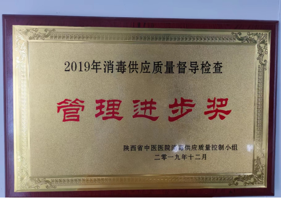 1、2019年在陕西省中医医院消毒供应质量控制小组的督导检查中,荣获管理进步奖。