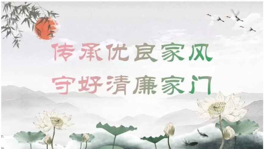 一、坚固树立家庭廉洁意识。大力弘扬“克勤于邦,克俭于家”的中华美德,积极提倡清廉家风,坚持以德治家,以俭持家,以廉保家,形成“以廉为荣,以贪为耻”的良好家风。