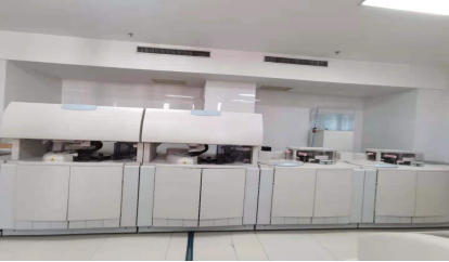 检验科设备先进,配备有法国思塔高STA R Max 全自动凝血分析仪、日立7600全自动生化分析流水线、德国罗氏全自动荧光定量PCR分析仪、希森美康XN550血球仪、全自动血培养及鉴定仪等大型先进仪器,这些先进的设备为检验项目的开展、服务病患提供了强劲的技术支撑。
