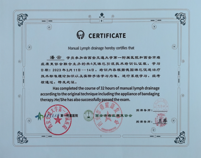 2、针对乳腺癌术后、肿瘤(术)后、脑卒中患者肩手综合征的淋巴引流技术。