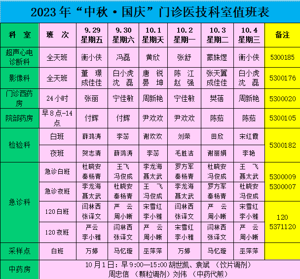 为了保障群众看病就医需求,持续守护群众健康,汉中市中医医院中秋国庆假期,各科室各司其职、坚守一线,全力做好节假日安全生产工作,医院各项医疗业务照常开展,全天候为您的健康保驾护航。